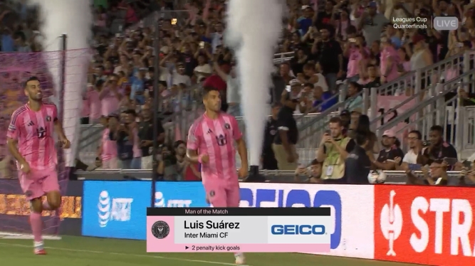 8月21日讯 联盟杯1/4决赛,迈阿密国际2-1战胜老虎大学。苏亚雷斯首发出战,点射双响,当选全场最佳。
